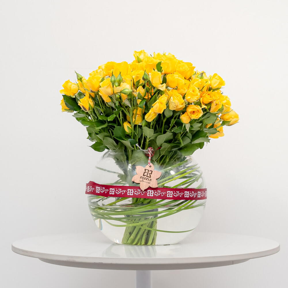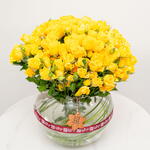 A radiant and joyful arrangement, Golden Radiance features 30 vibrant yellow spray roses, elegantly displayed in a glass bowl. The sunny hue of the roses creates a cheerful and uplifting atmosphere.