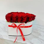 A romantic classic with a modern twist — this heart-shaped box of rich red roses is the perfect gift for someone truly special. Elegant and passionate, the velvety blooms are arranged tightly in a pristine white hatbox, tied with a bold red ribbon bearing the Aster branding. Ideal for Valentines Day, anniversaries, or spontaneous love notes, this floral arrangement captures emotion and sophistication in one refined package. To maintain its beauty, add clean water to the floral foam inside the box every 1–2 days and keep in a cool, shaded place.