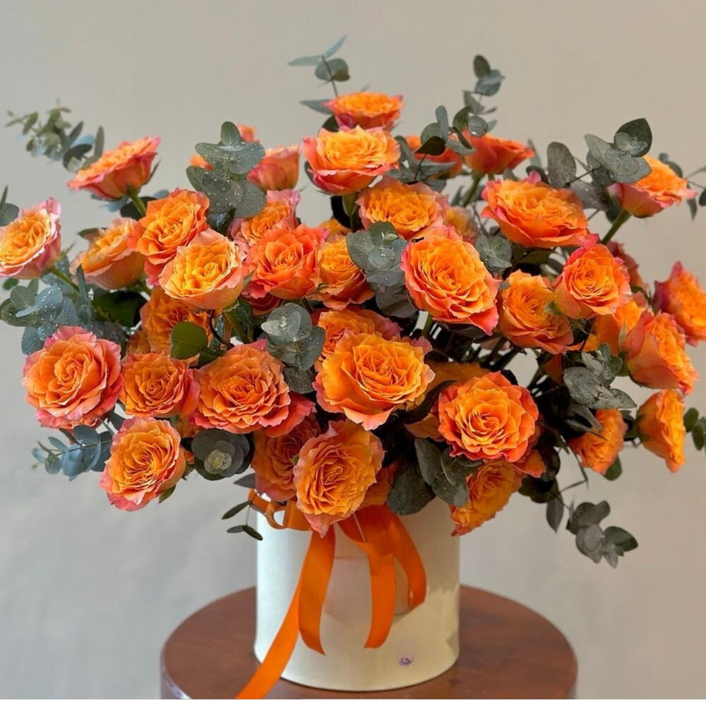 orange rose - 51 pcs eucalyptus leaves - 30 pcs