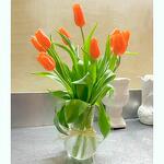 glass vase - 1 pcs orange tulips - 10 pcs