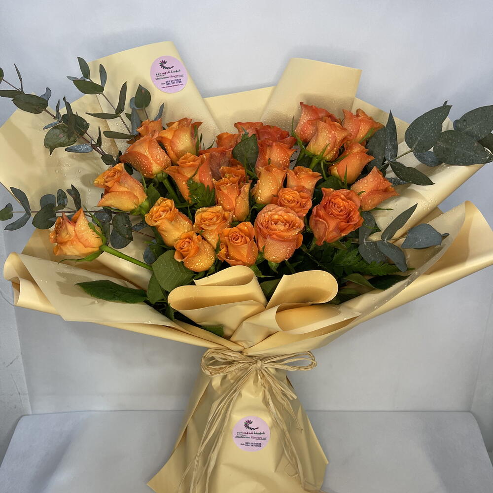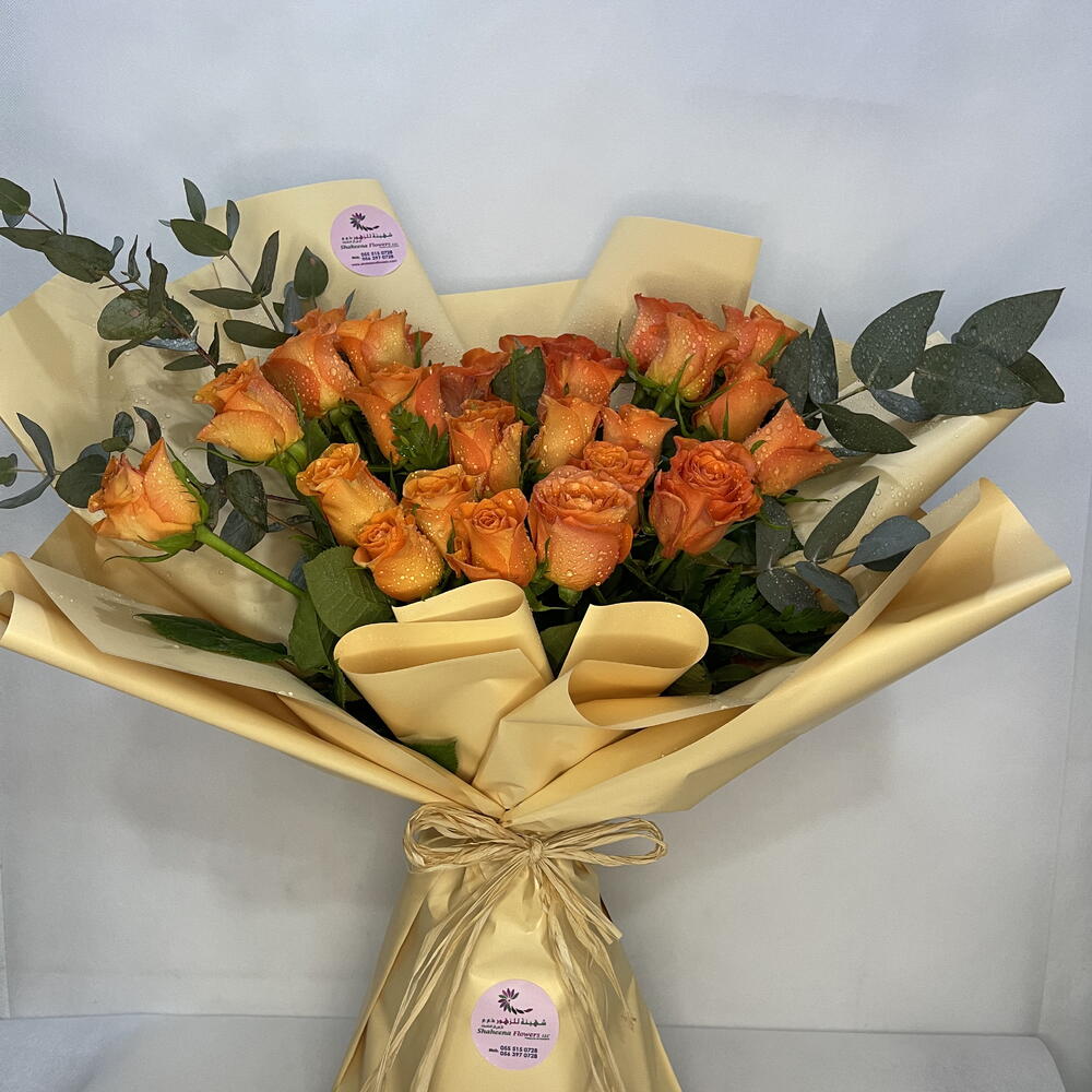 Orange Crush: 20 Long-Stem Orange Roses with Fillers in Pretty Wrapping Experience the vibrant allure of Orange Crush, a stunning bouquet featuring 20 exquisite long-stem orange roses delicately accented with fillers and presented in a charming wrapping. This captivating floral ensemble embodies energy, enthusiasm, and the joy of summer, making it the perfect gift for brightening any occasion. Key Features: Exquisite Orange Roses: 20 hand-picked long-stem orange roses known for their vibrant color and bold presence. Complementing Fillers: Fillers add texture, depth, and a touch of natural beauty to the bouquet, enhancing its overall appeal. Pretty Wrapping: Thoughtfully wrapped in a charming packaging, Orange Crush exudes charm and sophistication. Perfect for Any Occasion: Ideal for birthdays, celebrations, or to convey feelings of warmth, happiness, and positivity. Freshness Guaranteed: Each rose is carefully selected to ensure maximum freshness and longevity, ensuring a stunning display that lasts. Why Choose Orange Crush? Vibrant Color: The vibrant orange hue of the roses symbolizes energy, enthusiasm, and the joy of life, making Orange Crush a visual delight. Elegant Presentation: The combination of long-stem orange roses and complementing fillers creates a visually striking and harmonious bouquet. Versatile Gift: Suitable for various occasions and recipients, Orange Crush is a versatile choice that brightens any room and brings smiles to faces. Convenient Delivery: With its pretty wrapping, Orange Crush can be conveniently delivered to your doorstep or directly to your loved one, ensuring a seamless gifting experience.