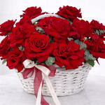 A timeless expression of love ❤️ This elegant white wicker basket is filled with 21 luxurious French red roses, beautifully arranged with soft eucalyptus greens and finished with a delicate ribbon. Perfect for anniversaries, Valentine’s Day, proposals, or any moment that deserves a grand romantic gesture. Our French Roses Basket showcases premium long-stem red roses, symbolizing deep love and passion. Handcrafted by expert florists, this arrangement brings classic elegance and rich fragrance—an unforgettable gift for someone special.