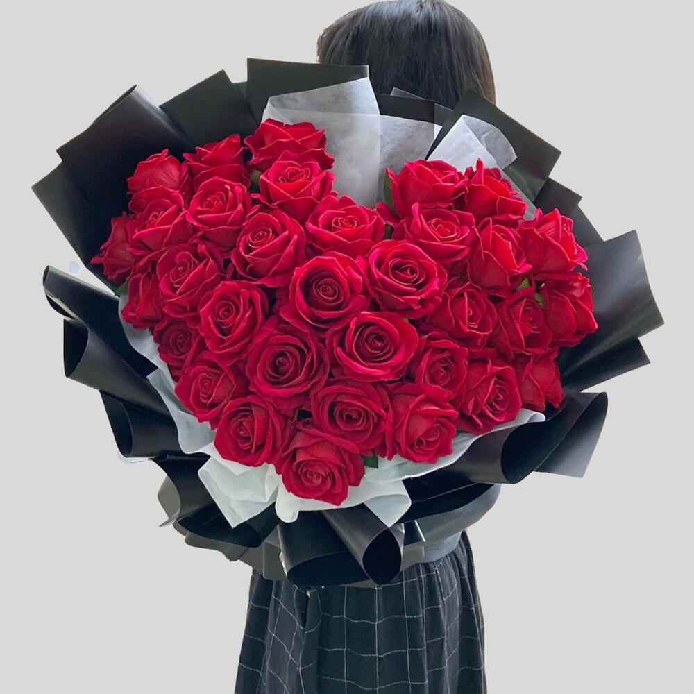 Express your deepest emotions with our stunning Passions Heart arrangement, a luxurious, heart-shaped bouquet of premium fresh red roses. Each vibrant bloom is meticulously hand-placed to create a breathtaking symbol of love, passion, and romance.