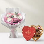 pink spray rose - 4 pcs white chrysanthemum - 3 pcs pink carnation - 3 pcs tissue - 1 pcs godiva large - 1 pcs