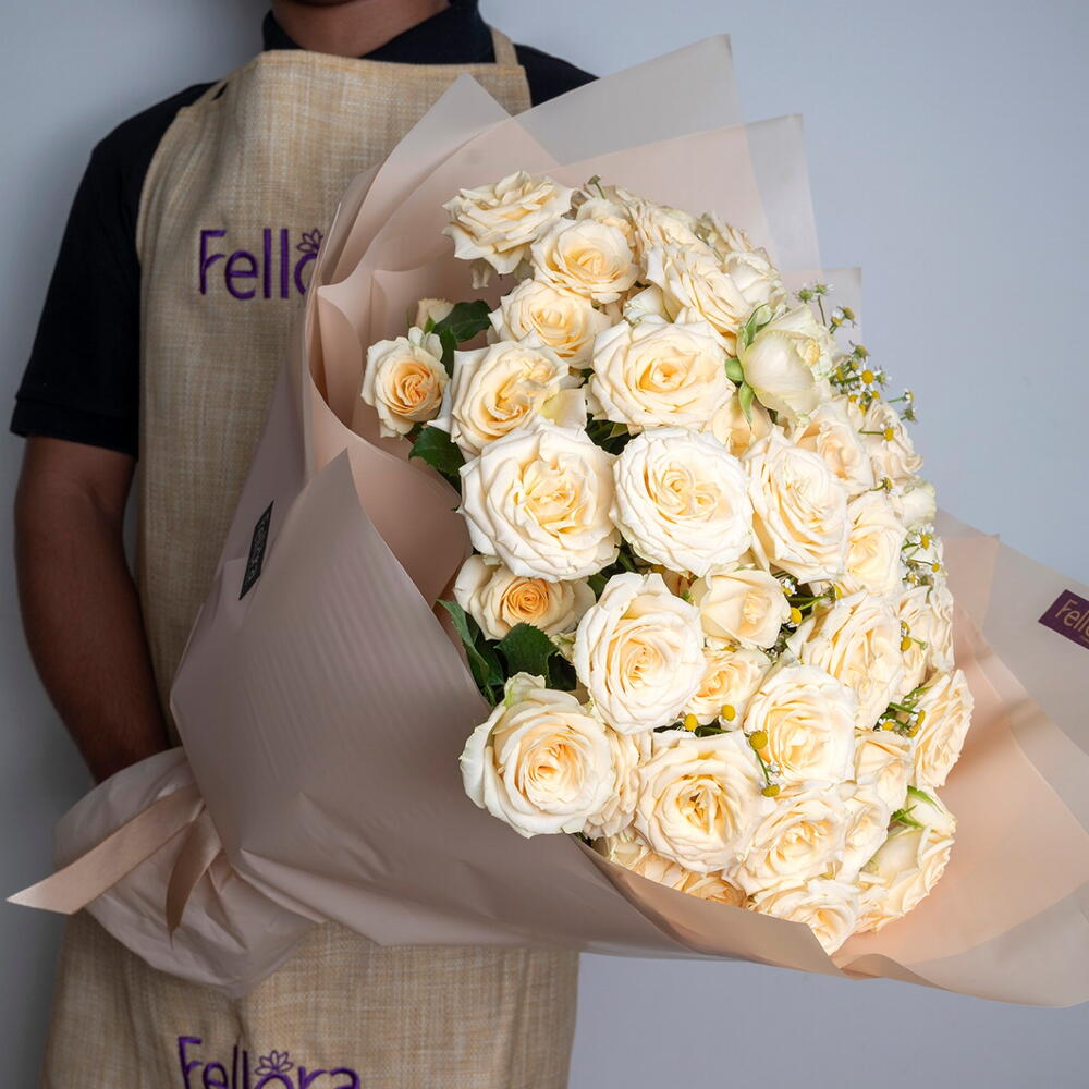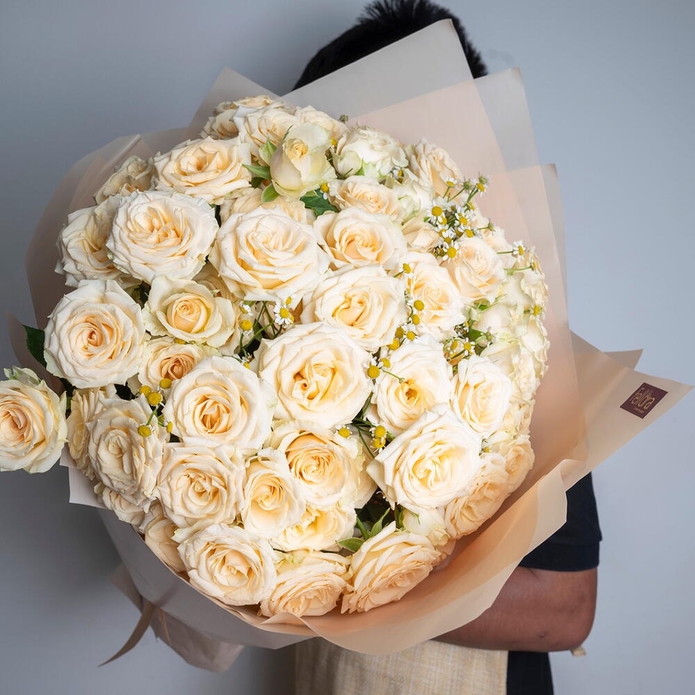 A mono bouquet with salinero baby roses