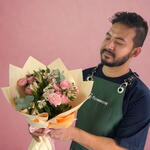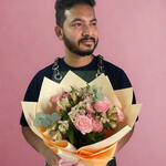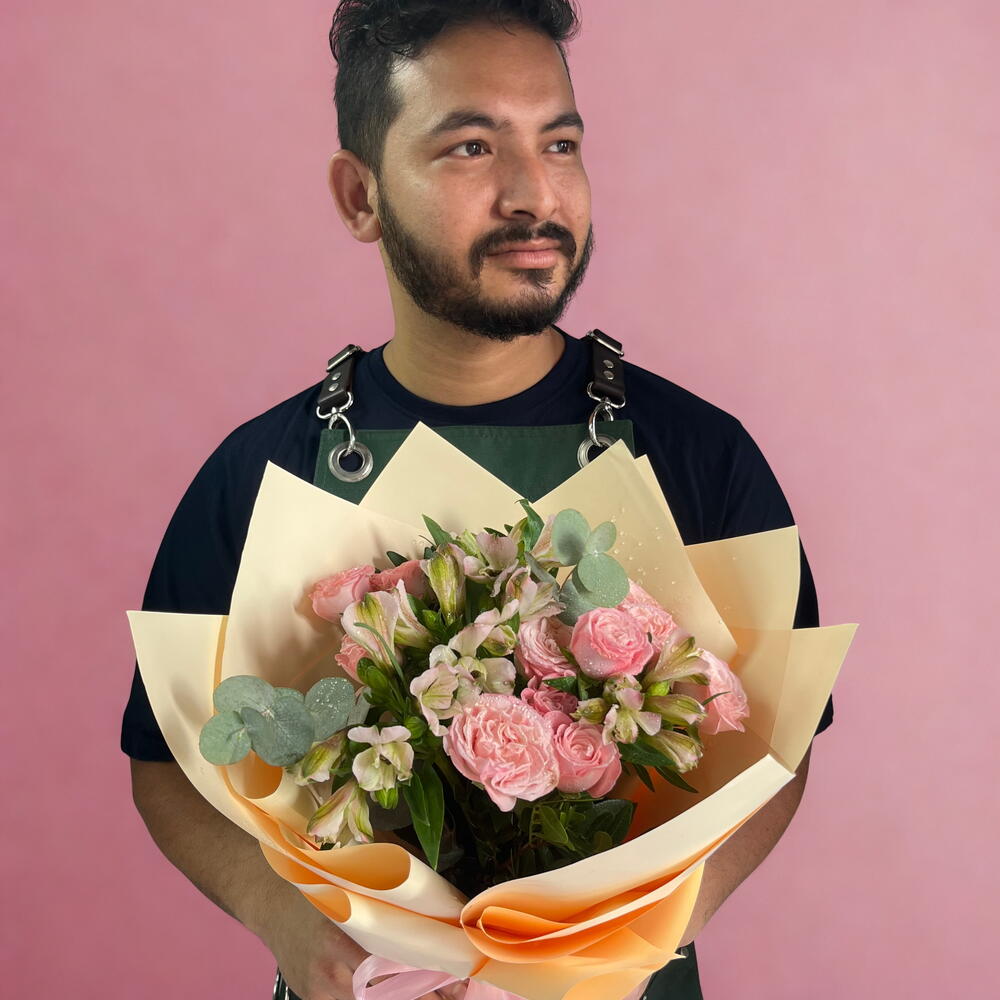 Delicately wrapped in soft peach tones, the Peach Blossom Bliss bouquet is a poetic blend of freshness and grace. Three charming pink spray roses pair beautifully with four elegant white alstroemeria stems, creating a gentle harmony of color and texture. This hand-tied arrangement radiates refined simplicity—perfect for brightening someone’s day, celebrating special moments, or adding an elegant touch to any space. Lovingly wrapped with care, it’s a bouquet that whispers beauty in every petal.