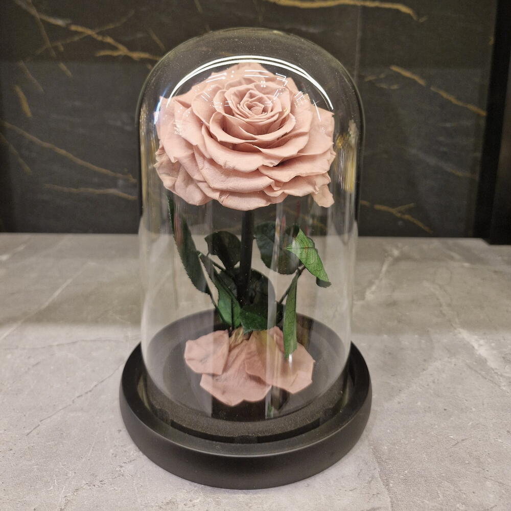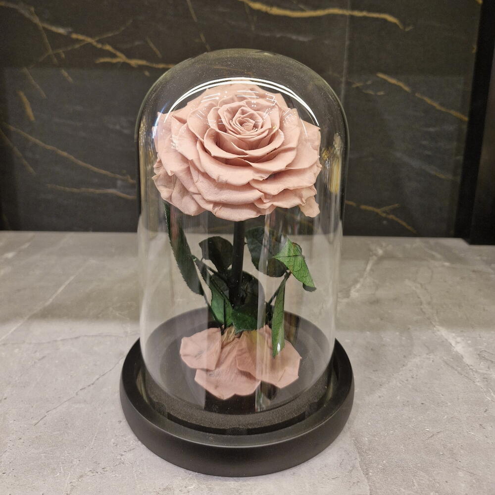 glass dome with black wood base - 1 pcs peach preserved rose - 1 pcs