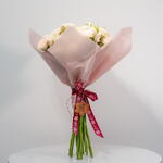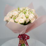 A sweet and cheerful bouquet of 15 delicate peach spray roses. This charming arrangement exudes warmth and positivity, making it the perfect gift for any occasion. The soft, pastel hue of the roses creates a calming and uplifting atmosphere