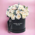 Introducing our symbol of love and peace - an elegant box filled with 21 beautiful white roses, artfully arranged with love in our medium Blush box. This exquisite floral arrangement exudes elegance and grace, making it a perfect gift for expressing heartfelt emotions. The pristine white roses symbolize purity and love, creating a sense of tranquility and serenity. Each rose is meticulously placed to create a stunning composition that showcases the natural beauty of the blooms.