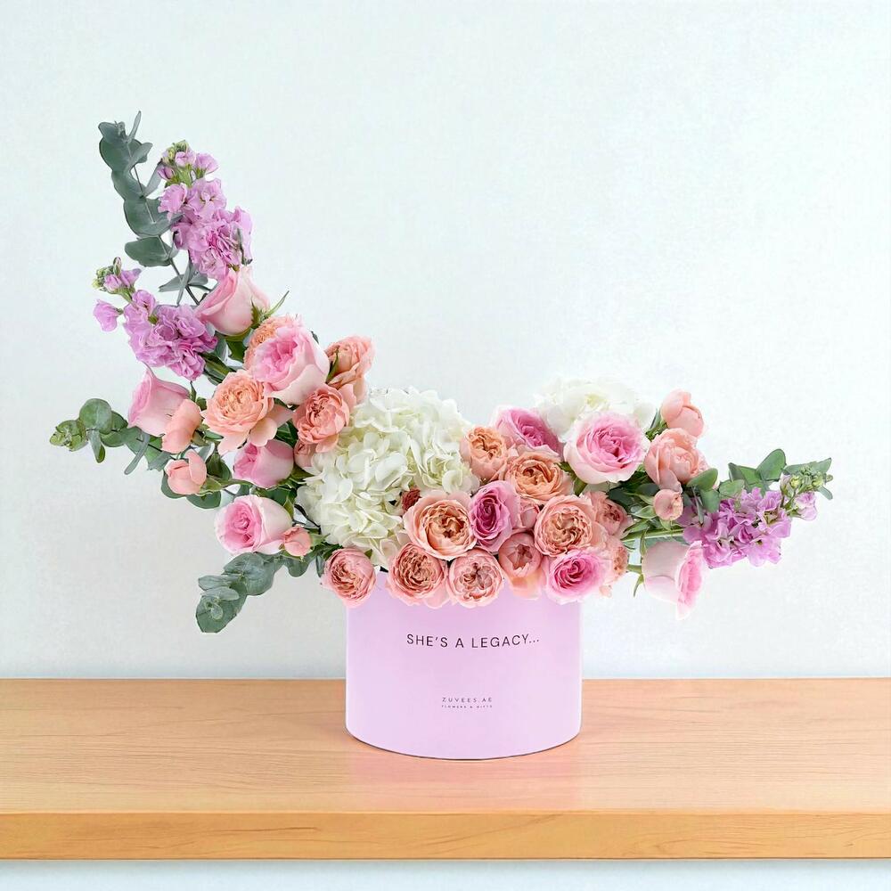 Celebrate the elegance, wisdom, and quiet strength of the women who inspire you with the Pearls Petals Legacy Box — a timeless tribute wrapped in blush tones, premium florals, and refined charm. Whether it’s a milestone birthday, a heartfelt thank you, or a celebration like Emirati Women’s Day, this captivating arrangement is designed to reflect deep admiration and grace. Crafted in a statement blush-pink box embossed with YOU INSPIRE, it’s a poetic expression of femininity—soft yet powerful, radiant yet grounded.