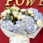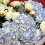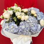 Eustoma white - 10 pcs peony white - 10 pcs hydrangea light blue - 5 pcs