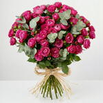 31 pink peony spray roses beautifully wrapped to create a soft, romantic, and graceful bouquet.