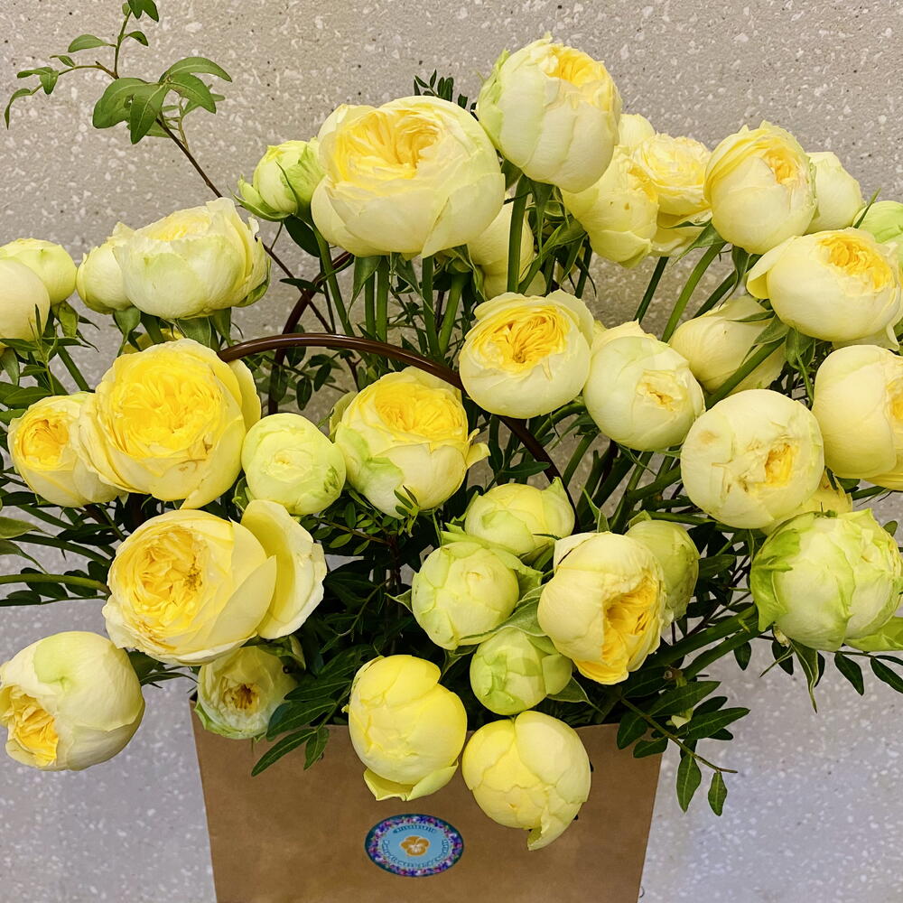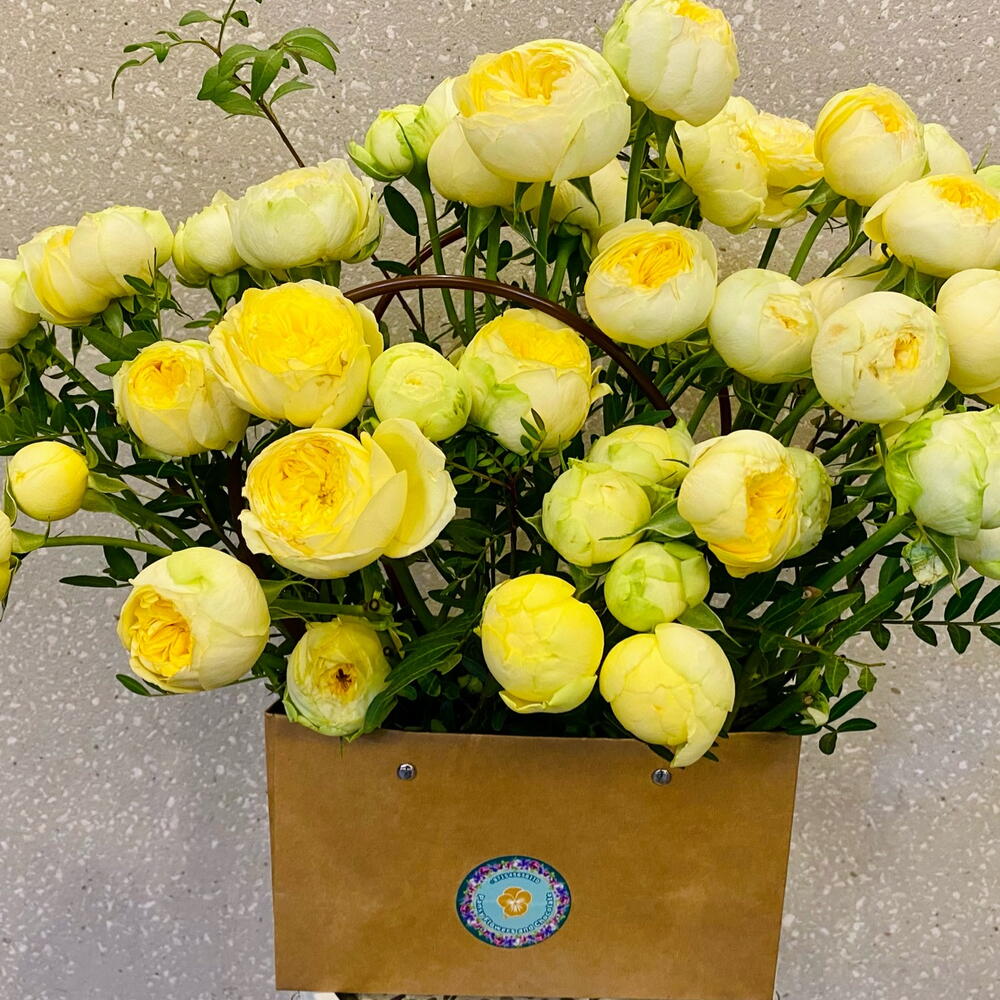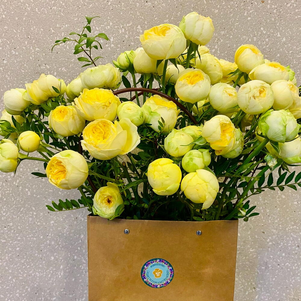 Pistachio - 4 pcs peony bubbles yellow spray peony rose - 10 pcs brown floral bag - 1 pcs