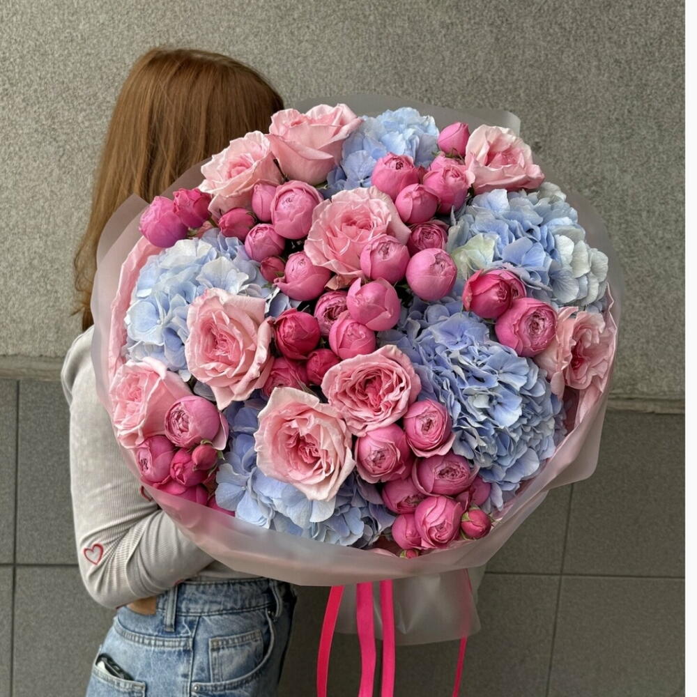 This sophisticated bouquet features beautiful hydrangeas, delicate peony and spray roses, and ruscus greenery. The entire arrangement is presented in stylish designer packaging, finished with a satin ribbon. Its the perfect gift for any occasion or simply to delight a loved one. This bouquet is unforgettable ❤️