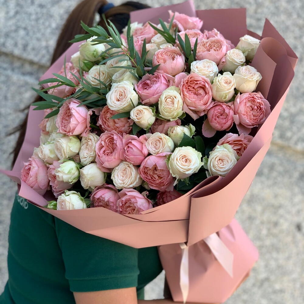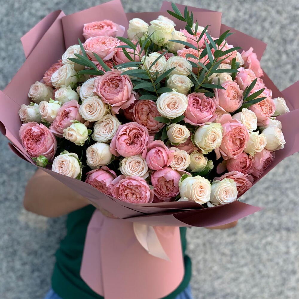 Eucalyptus - 2 pcs spray rose sofie - 11 pcs peony rose julietta - 10 pcs