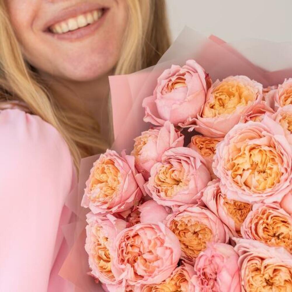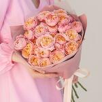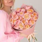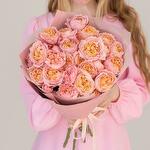 This captivating arrangement features an exquisite selection of pink peony-like roses, known for their lush petals and delicate fragrance. Each bloom is meticulously arranged to highlight its natural beauty and elegance. Wrapped in sophisticated designer packaging, this bouquet is perfect for expressing love, gratitude, or celebration. Whether its a special occasion or just because, let the timeless allure of these pink garden roses bring joy and elegance to any moment.