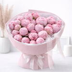 Description: 30 Pink Peonies Premium Pink Wrapping with White Tissue Branded Ribbon Finish