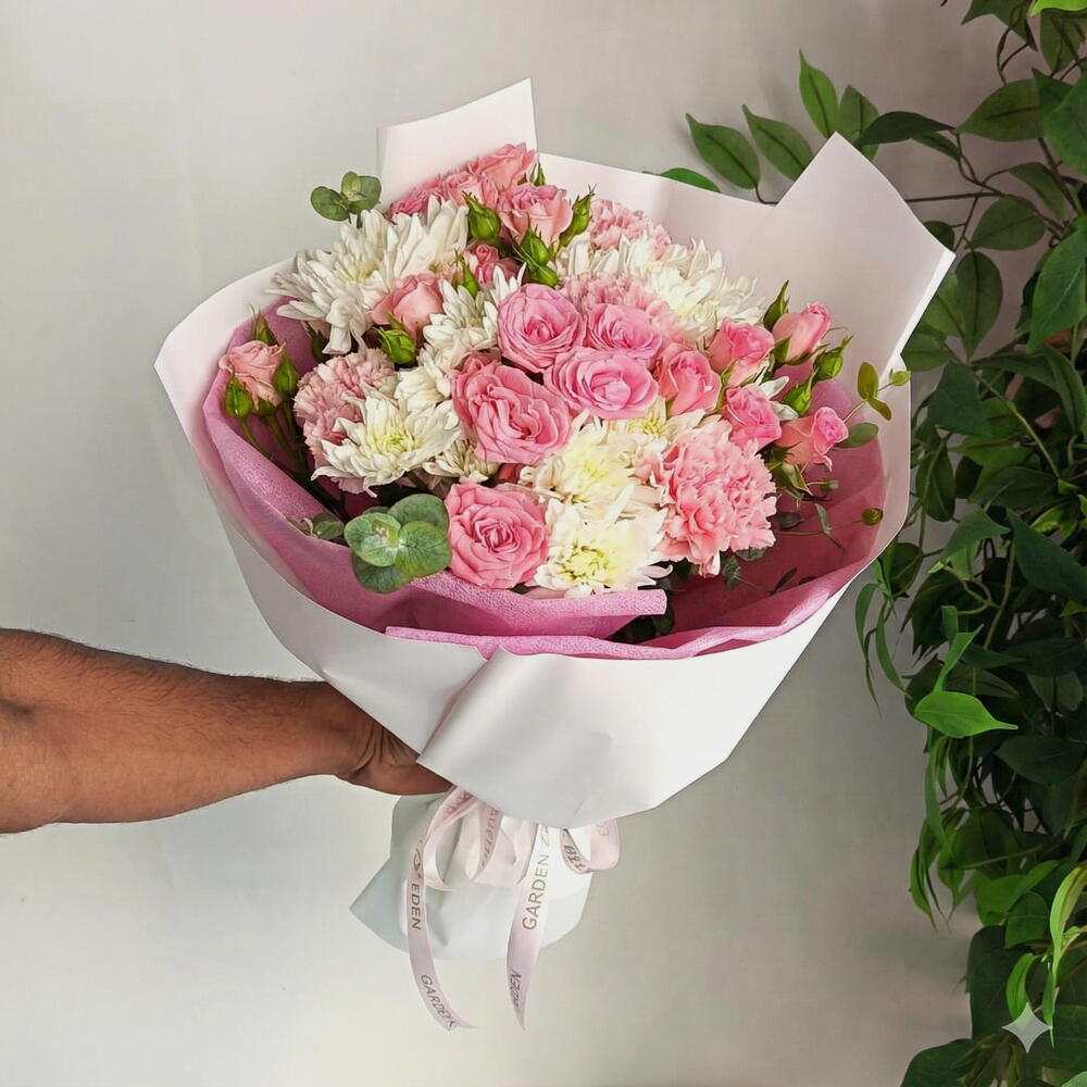 A delicate blend of pink and white mixed blooms, styled with soft elegance and gentle charm. Fresh, romantic, and perfect for birthdays, gratitude, love, or any moment that deserves a tender floral gesture. Whisper beauty into their day — order RC-M338 now and gift a bouquet filled with pure softness and grace.