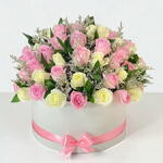Pink rose - 25 pcs White rose - 25 pcs limonium purple - 6 pcs