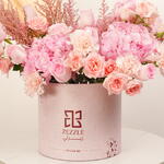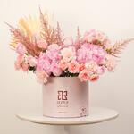 Unveil the captivating beauty of our Flowers in a Box, meticulously crafted with love and finesse. Nestled within a round zezzle box in alluring pink shades, each box houses 1 vibrant pink Hydrangea, 20 velvety pink Roses, 10 delicately fragrant pink Spray Roses, 10 attractive pink Carnations, and 5 exotic pink Astilbe. Setting a dramatic backdrop to this floral symphony are 2 dried palm leaves. Each flower is handpicked to ensure only the finest quality, causing this floral arrangement to radiate with unparalleled enchantment, making it a perfect gift or decorative piece for any occasion, adding aesthetics and freshness to your surroundings. Enjoy the enduring charm of our Flowers in a Box, a perfect testament to nature’s beauty.