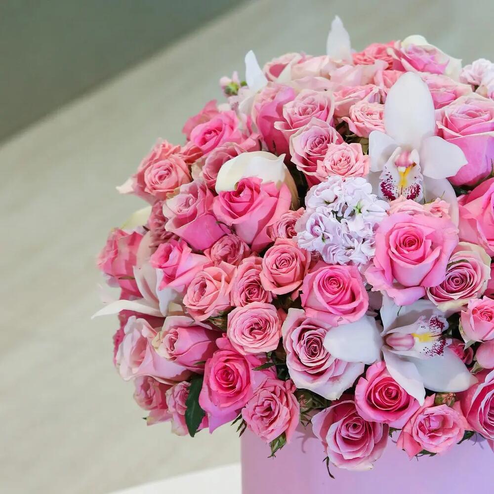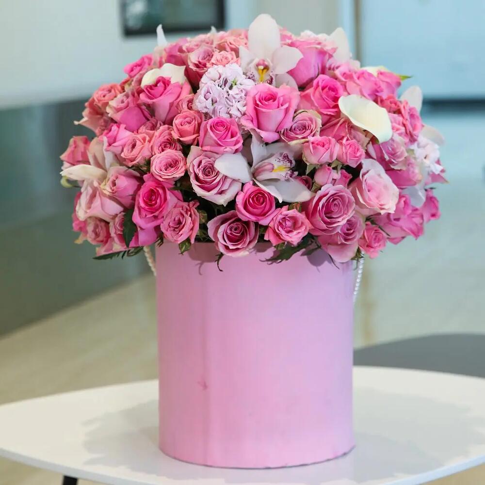 This Pink Beauty Box is a luxurious Roses in a Box arrangement made to wow at first sight. Presented in a premium hatbox, it’s filled with fresh premium pink roses (classic pink roses and delicate spray roses) and finished with elegant white orchid blooms for a soft, upscale touch. The result is a full, romantic pink rose premium bouquet in box form—perfectly round, photo-ready, and designed for lasting impact. Ideal as a stylish Birthday box and unforgettable birthday gifts, it’s also perfect for birthday flowers / flowers for birthday, best flowers for anniversary, proposals, and heartfelt love and romance flowers moments. Crafted with premium quality flowers, this fresh bouquet style box is a trending bouquet and a truly unique flowers bouquet—a top pick for anyone looking for the best bouquet in Dubai