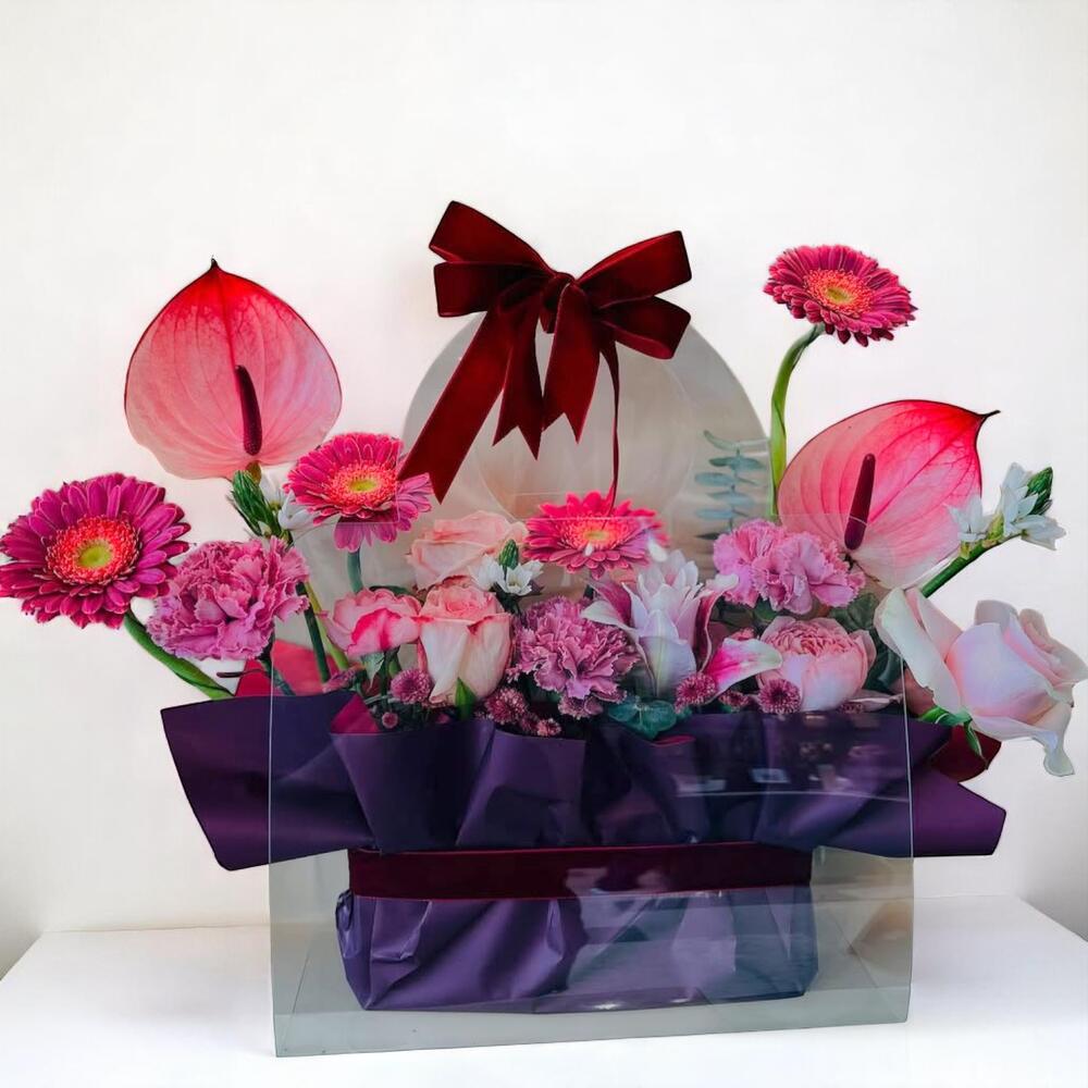 Pink Bloom Luxury Flower Bag – Anthurium, Gerbera Rose Floral Arrangement