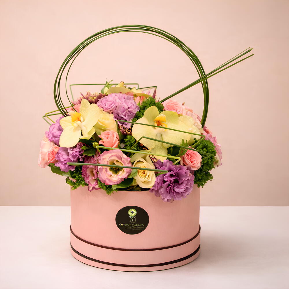 Elevate your space with the exquisite beauty of our PINK BOX ART flower arrangement. Crafted with meticulous attention to detail, this arrangement features a captivating blend of steel grass, lisianthus, roses, and orchids (seasonal), arranged in a stunning presentation that brings joy to any room. Whether as a gift or a personal indulgence, our PINK BOX ART arrangement is sure to delight and enchant.