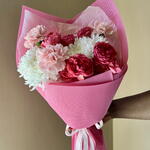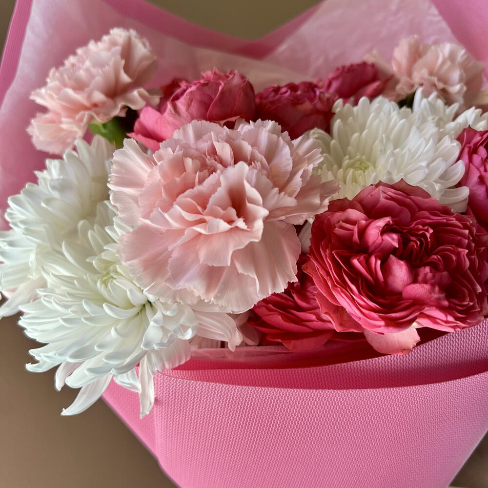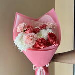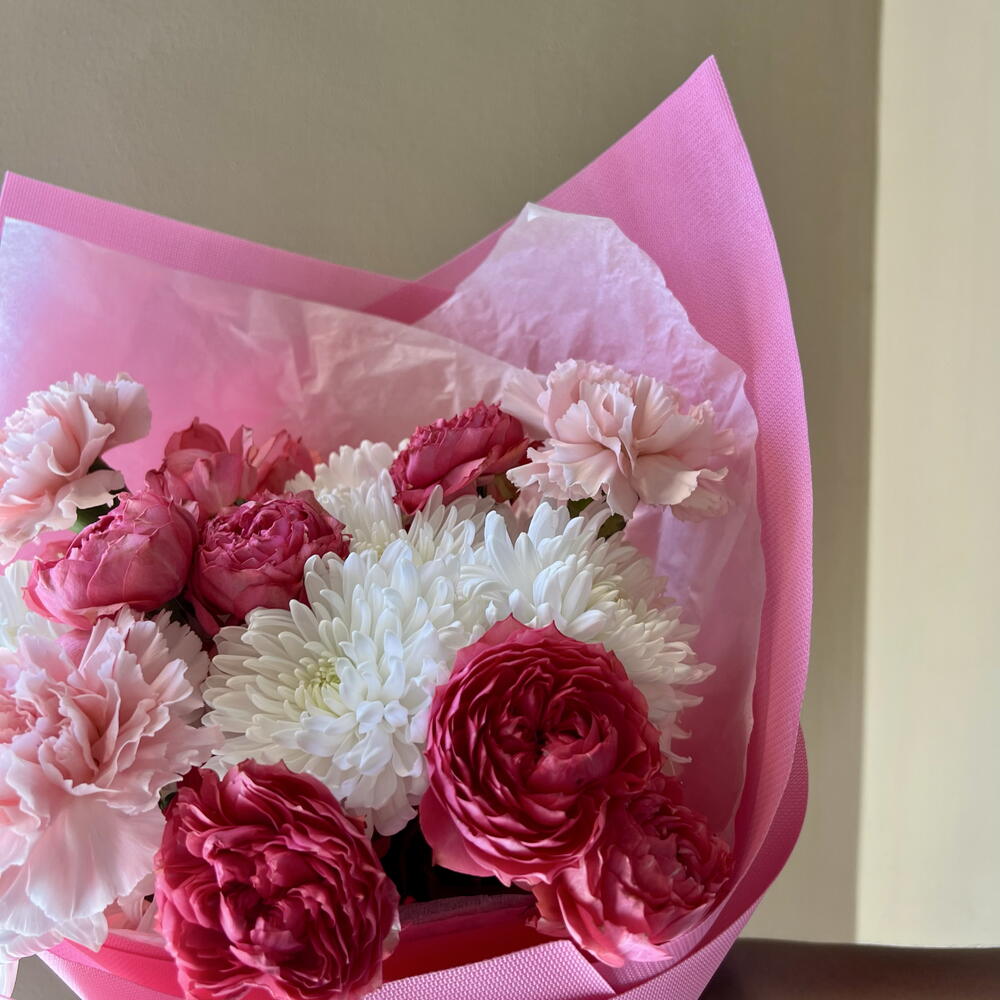 rose spray julietta - 2 pcs wrapping small - 1 pcs carnation young nobleman - 3 pcs chrysanthemum spray pinacolada l72 - 2 pcs chrysanthemum spray pinacolada i70 - 1 pcs