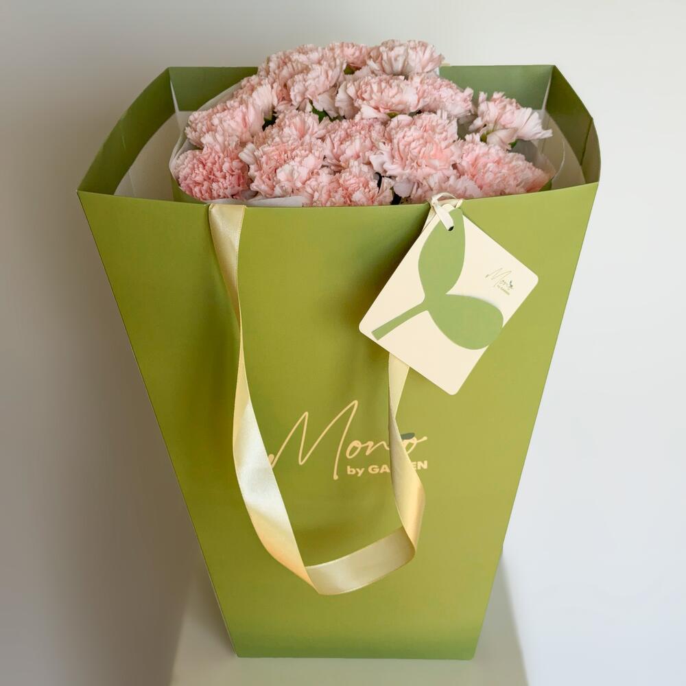 carnation - 20 pcs card - 1 pcs flower bag - 1 pcs aqua box - 1 pcs