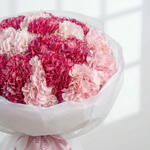A soft and elegant bouquet of pink carnations in two beautiful shades. Full, fluffy, and long-lasting, this bouquet is a lovely choice for birthdays, Mother’s Day, women’s celebrations, and sweet thoughtful gifting. • Please Note: As flowers are natural products, actual colors may vary slightly from digital images due to seasonal growth and lighting conditions. We guarantee that the overall style and premium quality as well as freshness of your arrangement will always be maintained.