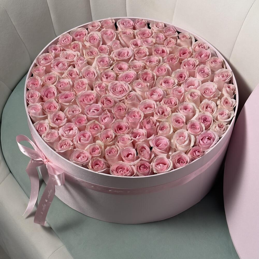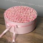 A stunning round box filled with elegant pink roses, perfect for any occasion. These pristine blooms symbolize purity, love, and grace, making them an ideal gift to express your heartfelt emotions. Beautifully arranged and presented, this box of pink roses adds a touch of timeless sophistication to any space. Ingredients: 115 white roses (depends on size) Packaging: Box