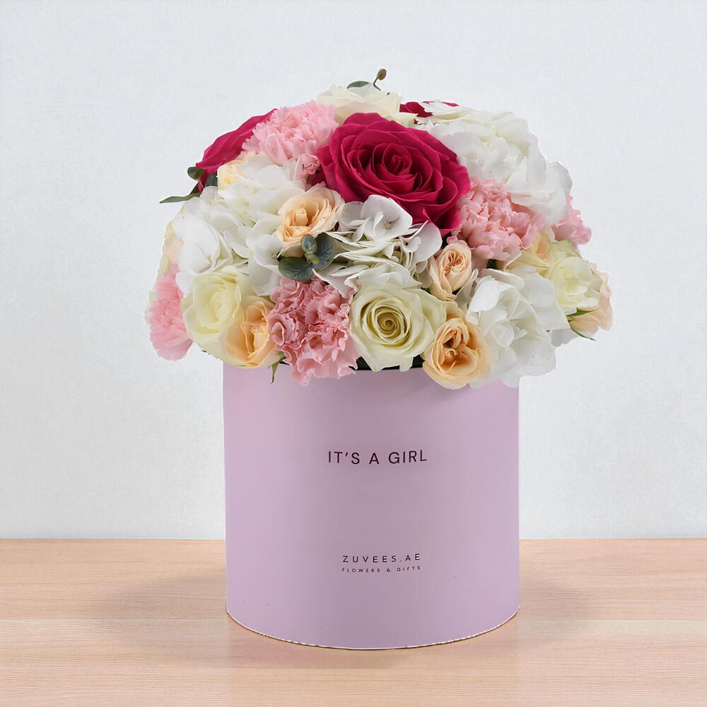 Welcome a beautiful new life with the Pink Floyd Baby Girl Bloom Box — a tender and joyful floral arrangement that radiates warmth, purity, and celebration.