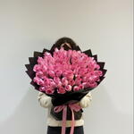 Elegant in its simplicity, this stunning Mono Bouquet showcases a heart-stirring combination of 51 pink roses. Each bloom, hand-picked at the peak of its beauty, is delicately wrapped in 7 pieces of edgy black paper. This bouquet offers a unique bouquet design that extends the charm of timeless pink roses with a touch of modern aesthetic. Its not just a bouquet, its an emotion wrapped in the stunning contrast of pink and black, aimed to create an unforgettable moment.