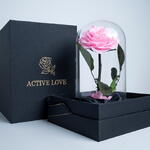 A luxury flower gift which lasts minimum 2 years. It is coming in a high quality dome vase and a premium box and delivered in a paper bag