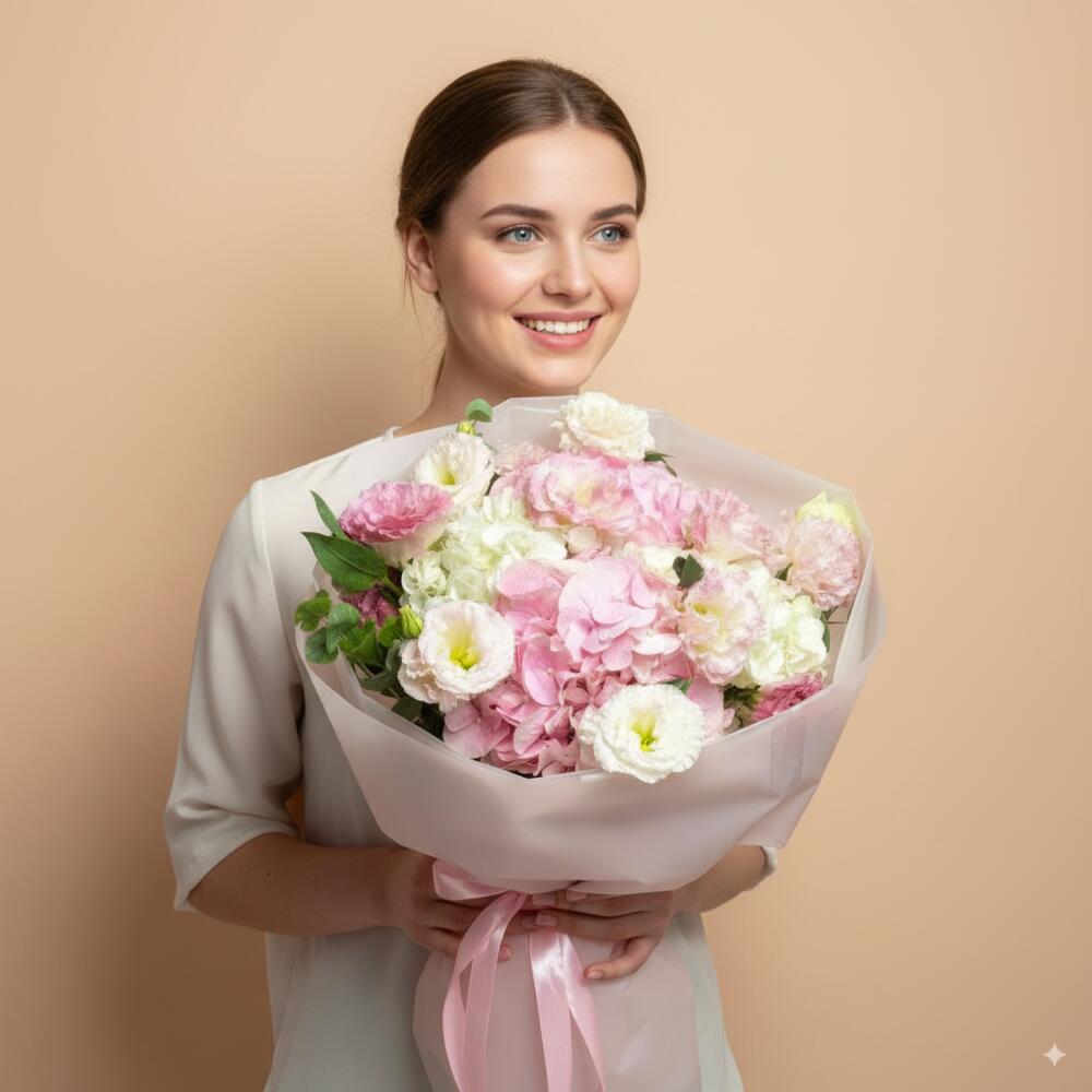 Pink Lisanthus N Hydrangea Bouquet
