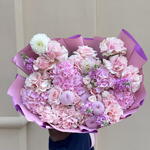 Spray rose - 10 pcs mathiola pink - 5 pcs roses pink - 10 pcs chyrsanthemum pink - 5 pcs hydnragea - 5 pcs