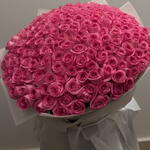 This breathtaking bouquet is composed entirely of premium pink roses, meticulously arranged to create a full, cloud-like display of elegance and charm. The soft yet vibrant pink tones symbolize admiration, grace, and deep affection, making this bouquet a powerful expression of love and appreciation. Wrapped in delicate white translucent paper for a refined finish, this arrangement is perfect for grand gestures, anniversaries, proposals, birthdays, or unforgettable romantic moments.