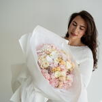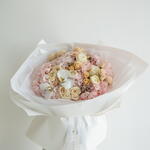 Hydrangea - 8 pcs ranunculus - 3 pcs bombastic rose - 5 pcs phalaenopsis orchid - 2 pcs ozothamnus - 3 pcs ohara rose - 5 pcs
