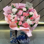 A delightful blend of vibrant pinks and soft creams, this compact bouquet radiates warmth and affection. Beautifully arranged in a white box with a satin ribbon, it’s the perfect choice for expressing love, gratitude, or congratulations. With cheerful carnations, romantic roses, and charming chrysanthemums, this floral arrangement brings joy to any space. For best results, keep the bouquet in a cool room, avoid direct sunlight and drafts. Lightly mist the flowers daily and check the floral sponge or water source inside the box to ensure hydration. Ideal for those special moments like birthdays, anniversaries, or any heartfelt occasion, this flower bouquet transcends the ordinary and becomes a tangible manifestation of love. Send it as a birthday gift, express anniversary wishes, convey get well soon sentiments, or simply wish a loving moment to someone dear. This luxurious arrangement is a grand gesture that speaks volumes, perfect for expressing timeless love and appreciation. Whether it’s a romantic gift, an anniversary surprise, or an unforgettable statement of affection, this bouquet makes every moment extraordinary. Mother, Lover, Sorry to someone, Friends, Anniversary, Birthday, Iam Sorry, New Baby, Suits any Occasion, Thank You, Wedding