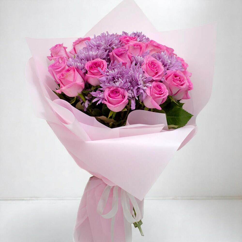Pink Moon Bouquet – Elegant Pink Roses and Purple Chrysanthemums