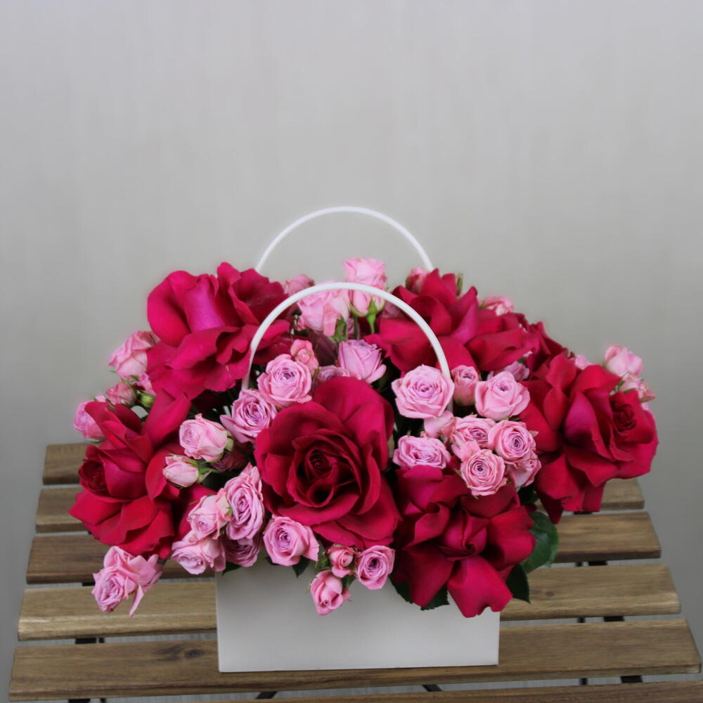 Experience the enchanting blend of romance and elegance with our specially curated Flowers in a Bag. This gorgeous arrangement features 10 delicately handpicked Odilia spray roses interwoven with 10 sumptuous dark pink roses, creating a harmonious blend of beauty and charisma. Each bloom has been chosen for its unique charm and radiant colors. Perfect for creating a lasting impression, this arrangement is sure to command attention wherever it graces. Rediscover the joy of gifting and self-indulgence with our Flowers in a Bag.