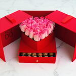 25 pink roses and 16 pcs Ferrero chocolate in box