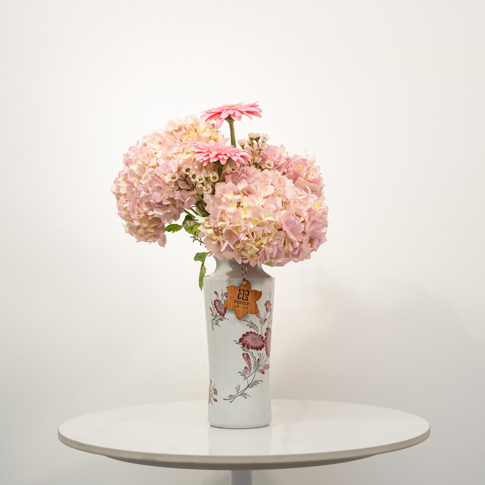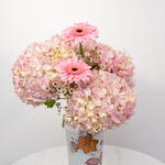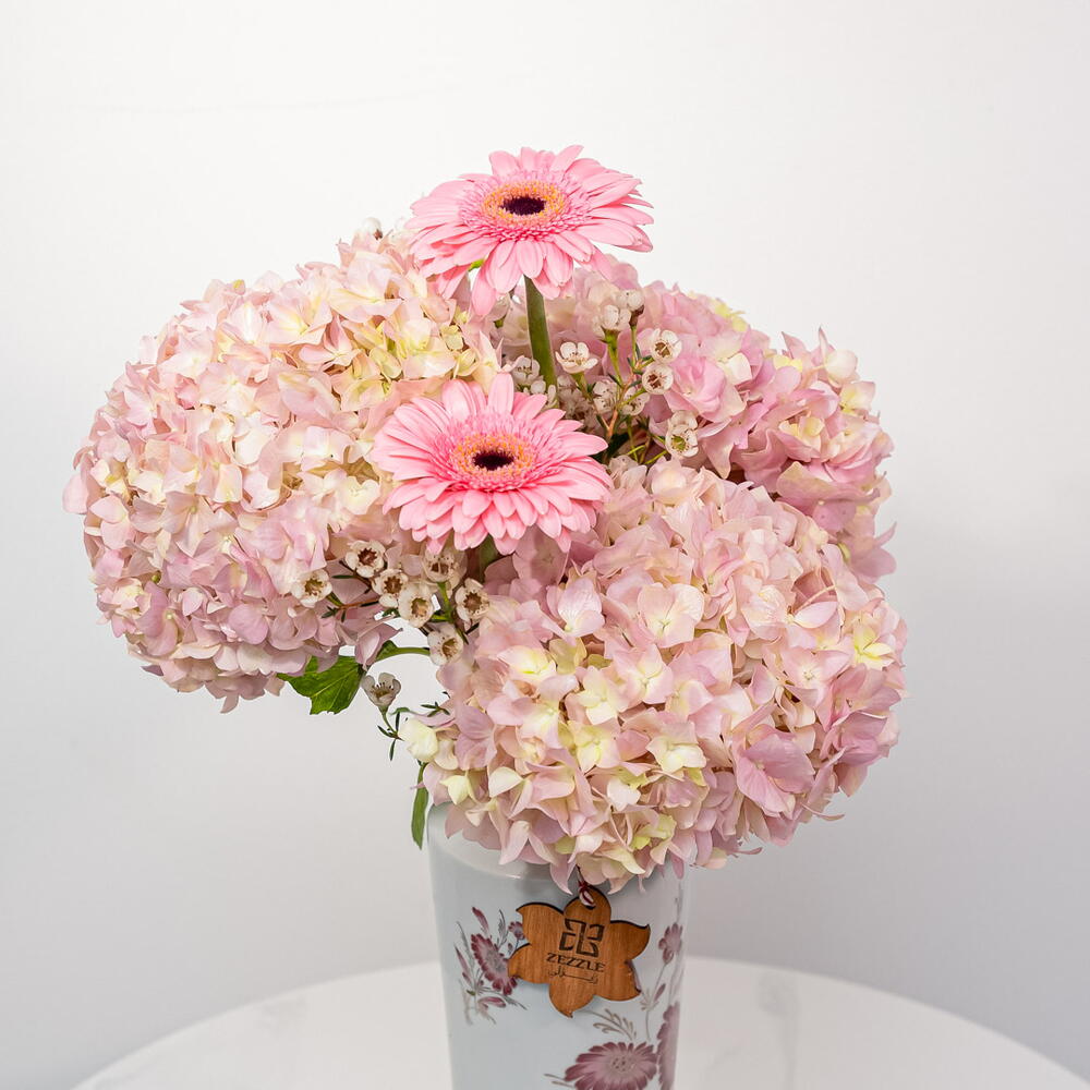 hydrangea pink - 3 pcs ceramic vase - 1 pcs gerbera pink - 2 pcs
