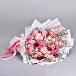 5 Dark Pink Spray Rose 3 Light Pink Mathiola 4 Pink Bombastic Garden Spray Rose 5 Red Rose 2 Purple Limonium Filler 2 Cinerea Eucalyptus Filler 2 White Gypsophillia Filler Ferraro Rocher Single 12 Pc Arranged in a Bouquet