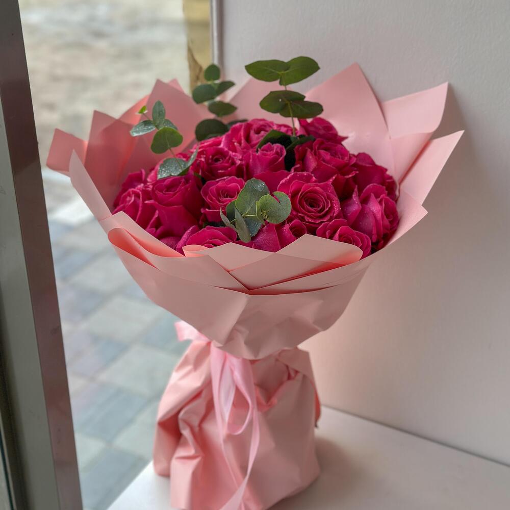 Eucalyptus - 4 pcs roses pink - 17 pcs
