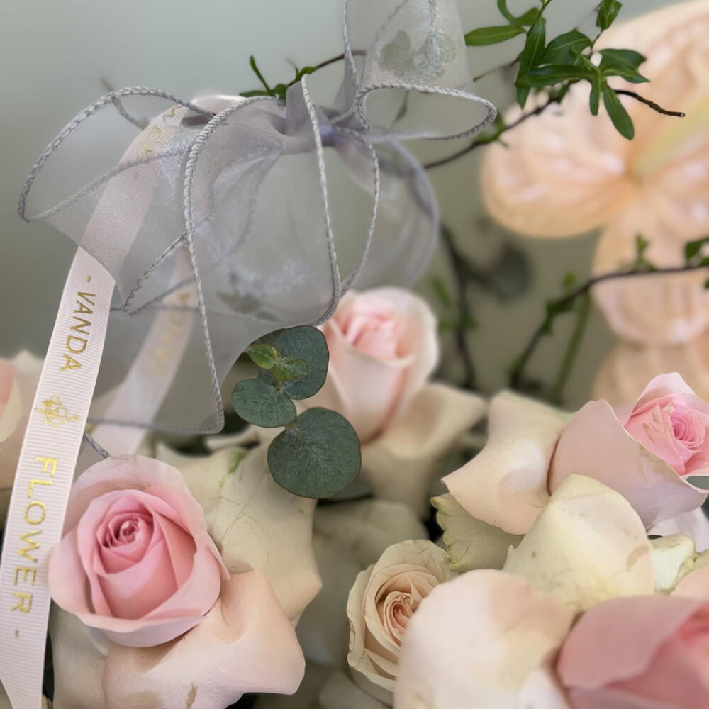 Pink rose - 16 pcs stems eucalyptus - 4 pcs stemsanthurium pink - 2 pcs