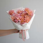 Ribbon - 1 pcs Pink rose - 11 pcs white wrapping - 5 pcs