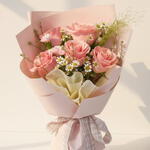 Show Mom your love with our Pink Rose Carnation Bouquet, featuring 5 soft pink roses paired with 3 gentle pink carnations. Accented with 3 stems of chamomile and 3 Lepidium greens for a fresh, garden-inspired touch. Perfect for Mother’s Day or heartfelt gifting, this bouquet radiates romance, freshness, and simple, elegant charm. 🌸💗🌿