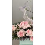 Indulge in the romantic allure of our exquisite Flowers in a Box arrangement. This breathtaking ensemble consists of 15 soft pink roses, lovingly accentuated by delicate touches of 2 pieces of white hypericum. A balancing act of aesthetics, 4 pieces of eucalyptus add a note of sophisticated freshness, completing this artistically curated spectacle. A perfect gift to convey your sentiments or a luxurious treat to enhance your space.