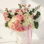 Pink Rose White Hydrangea with Eucalyptus Bouquet